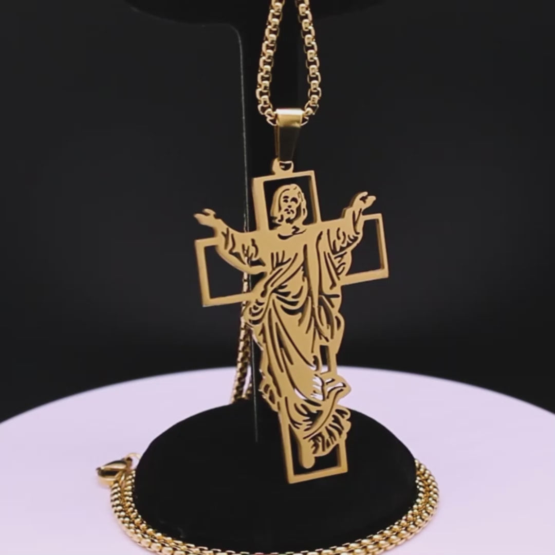 Colar com Crucifixo Jesus Ressuscitado - Símbolo de Fé e Vitória