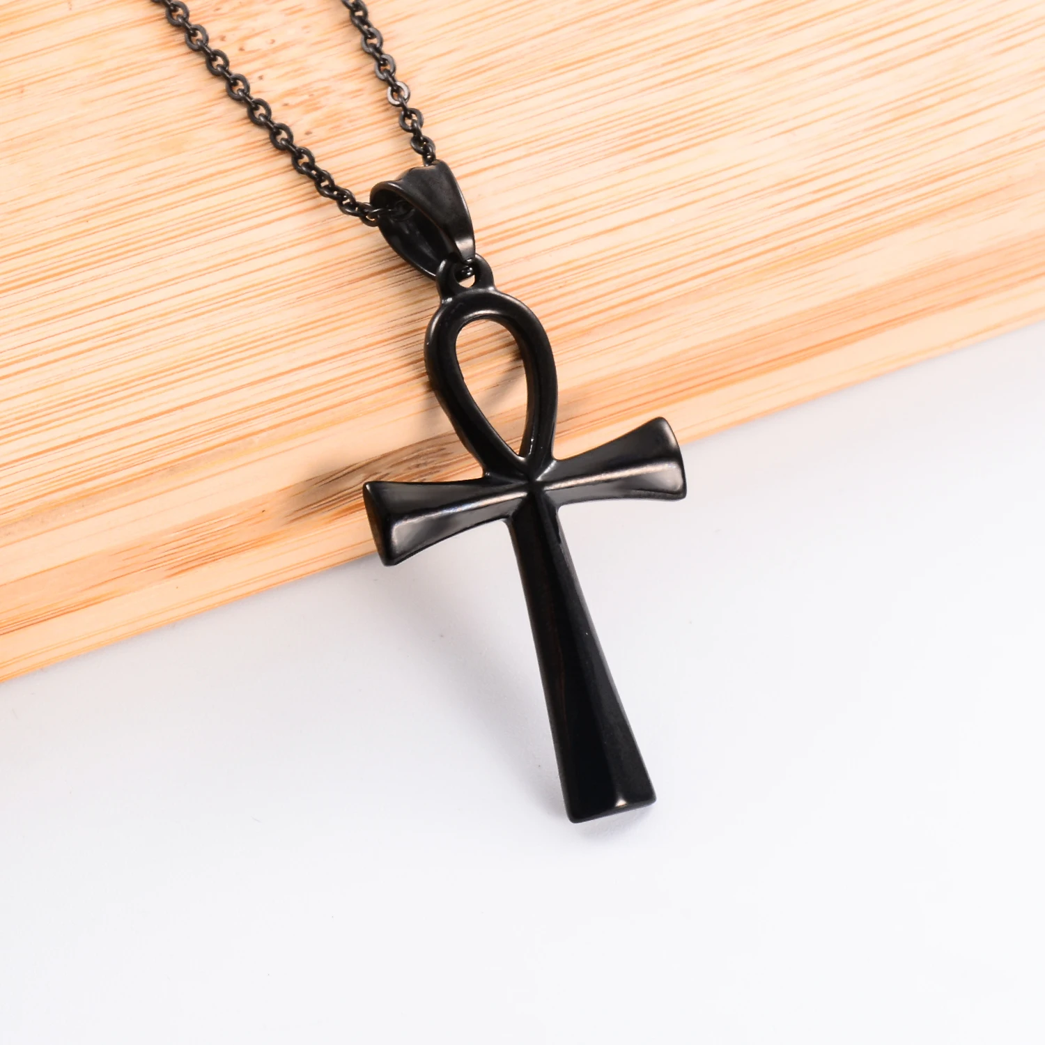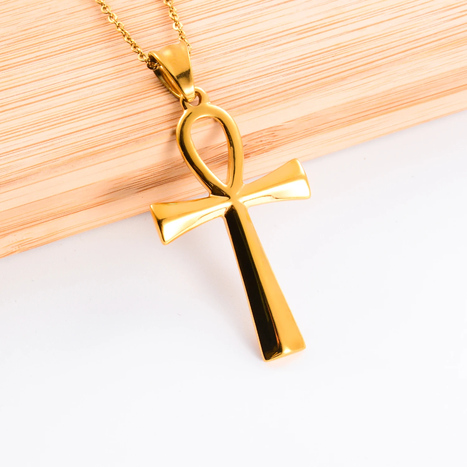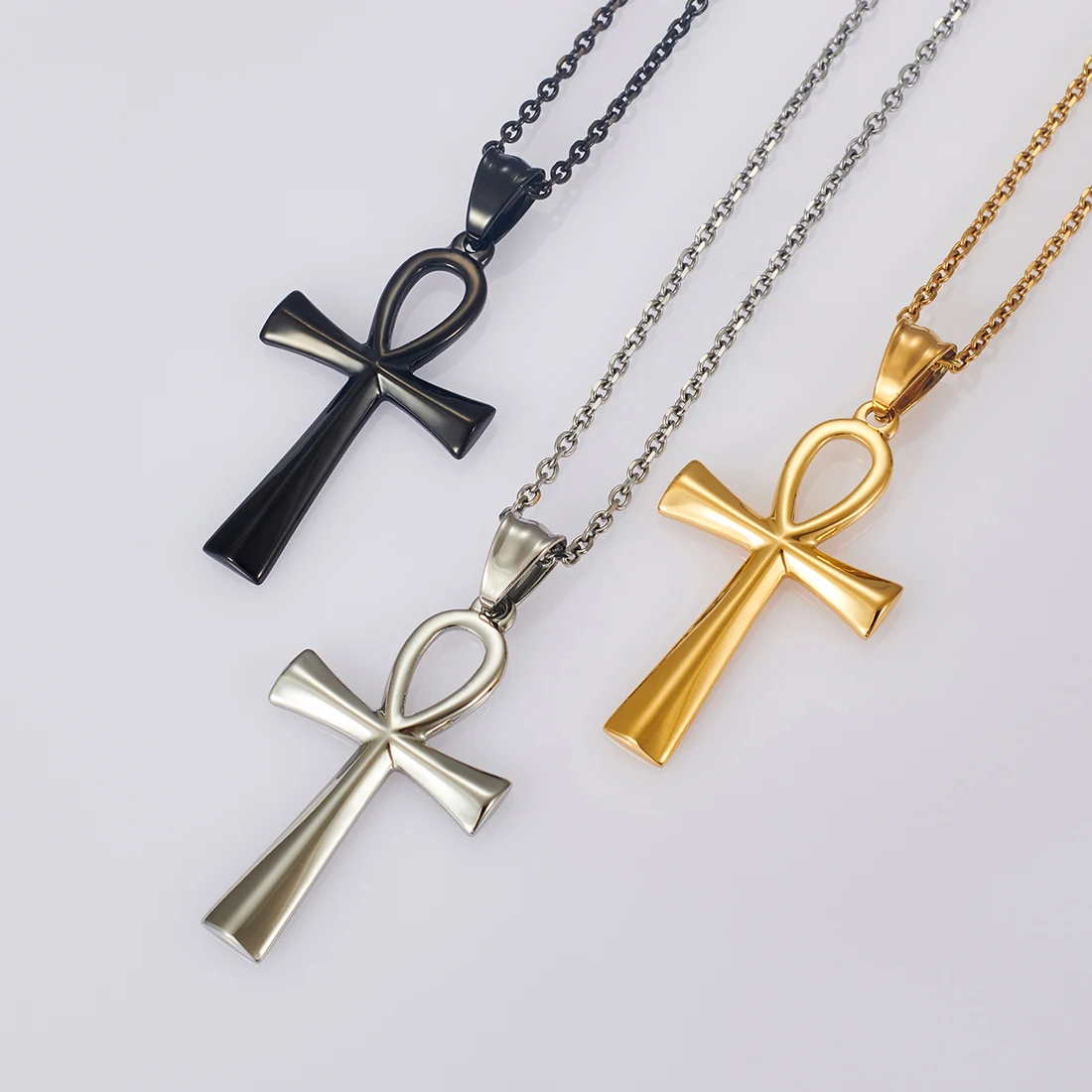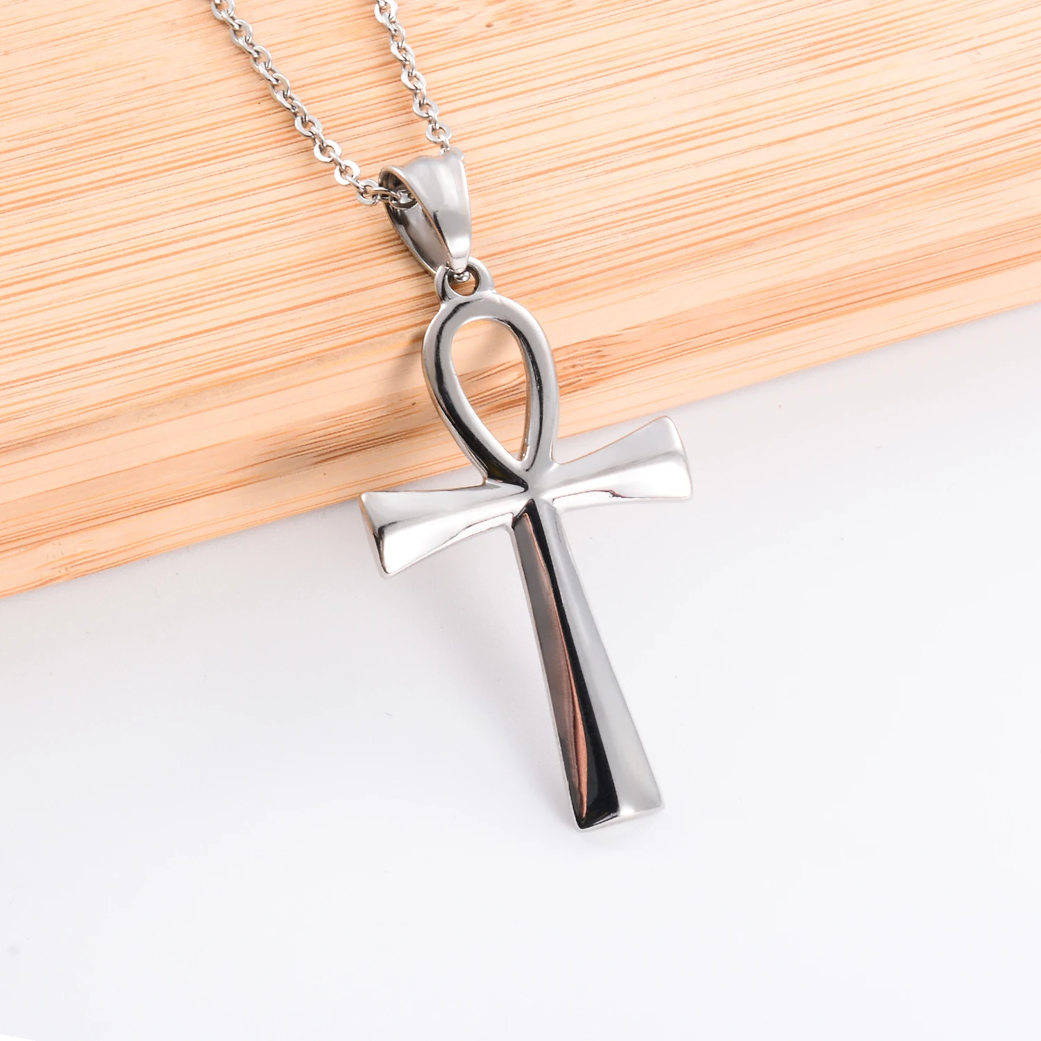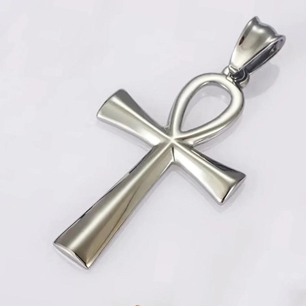 Colar Pingente Cruz Ankh Egípcia em Aço Inoxidável Vintage