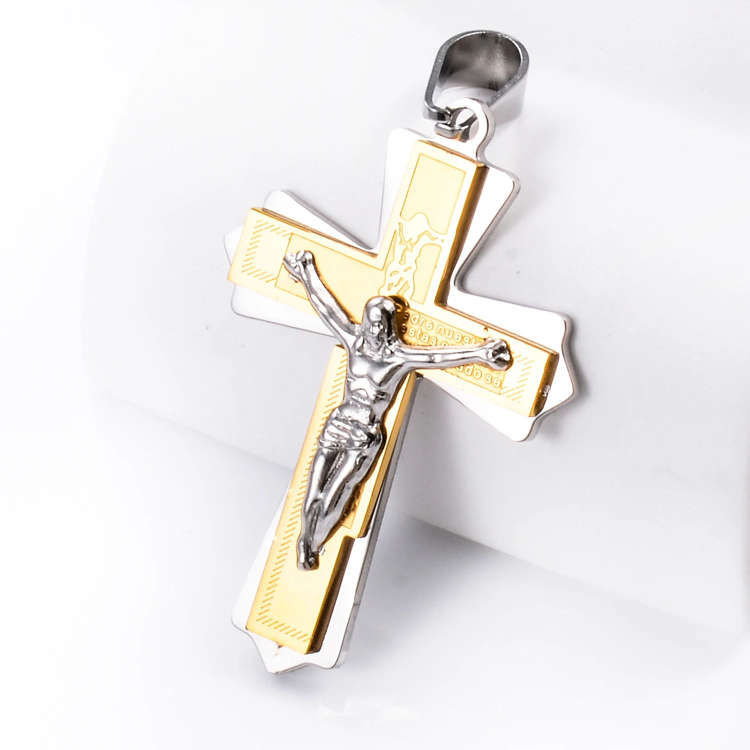 - Crucifixo Inox Duplo Dourado/Prata