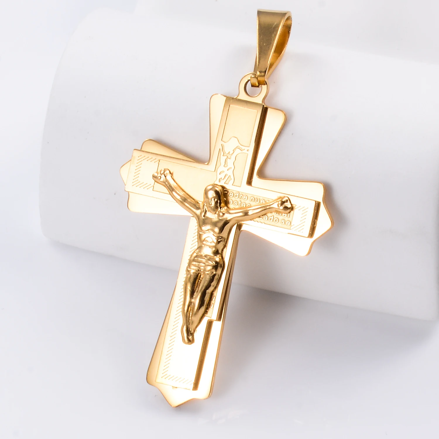 - Crucifixo Inox Duplo Dourado