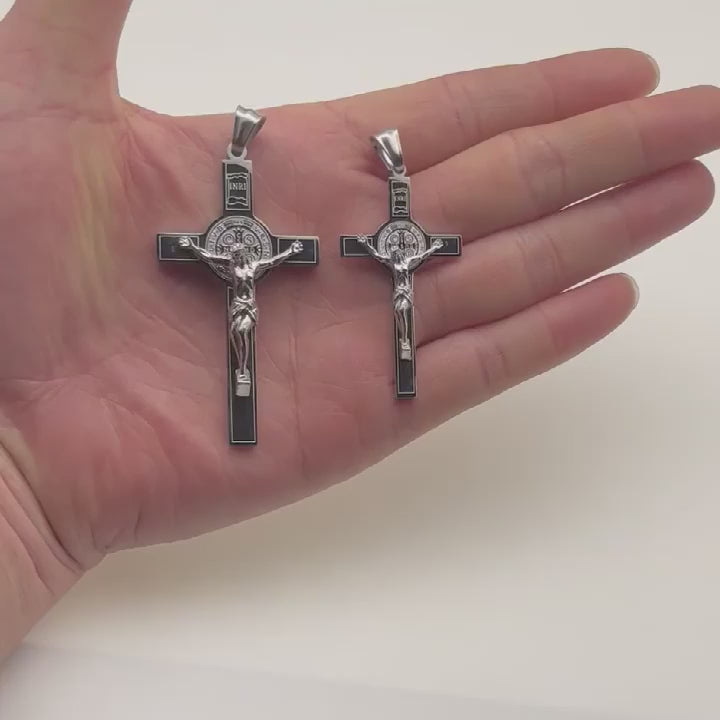 Pingente Crucifixo com Medalha de São Bento em Aço Inoxidável 316L