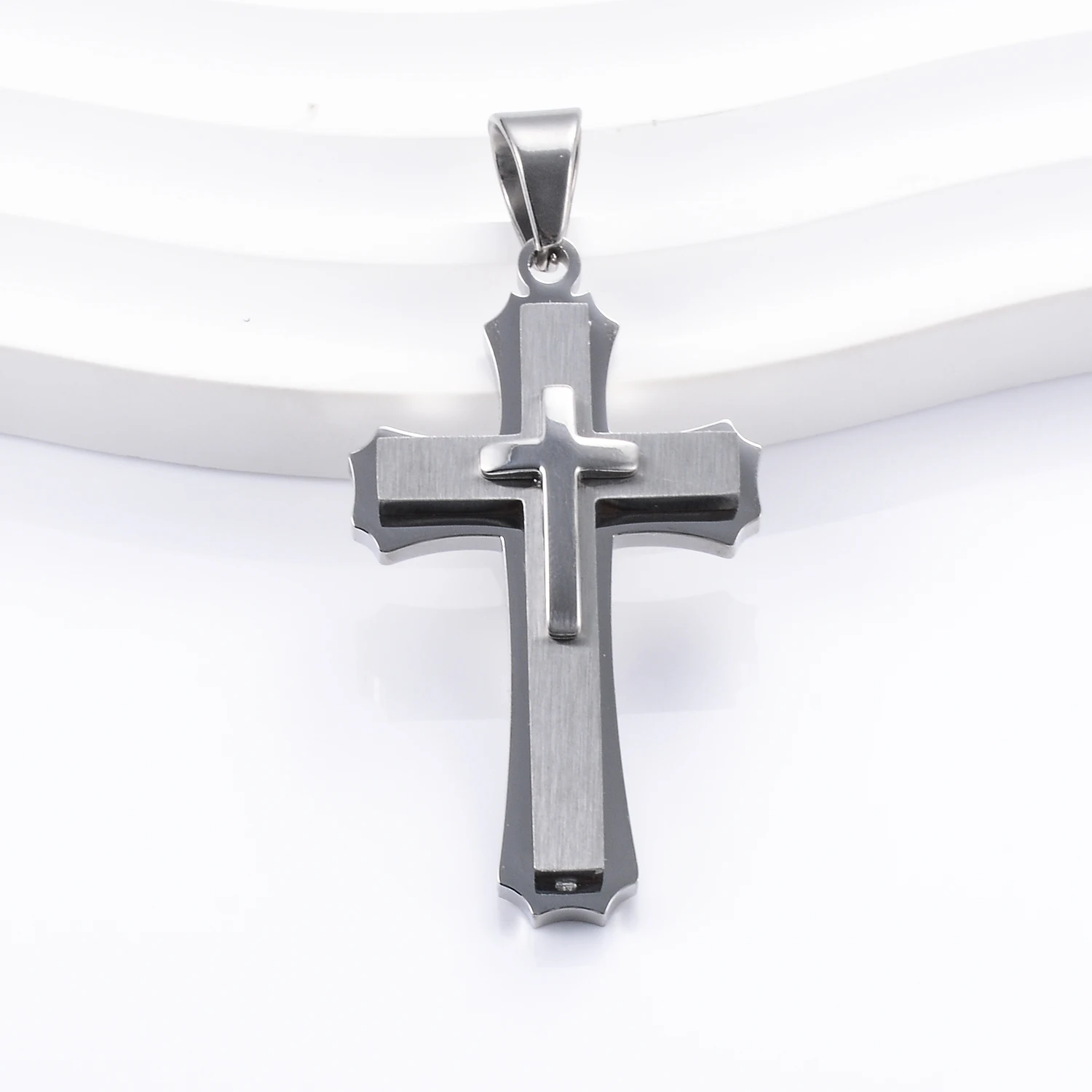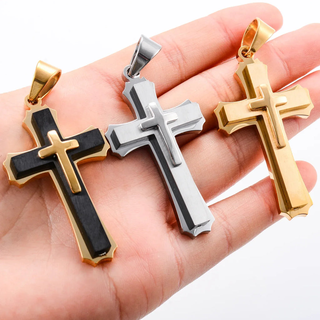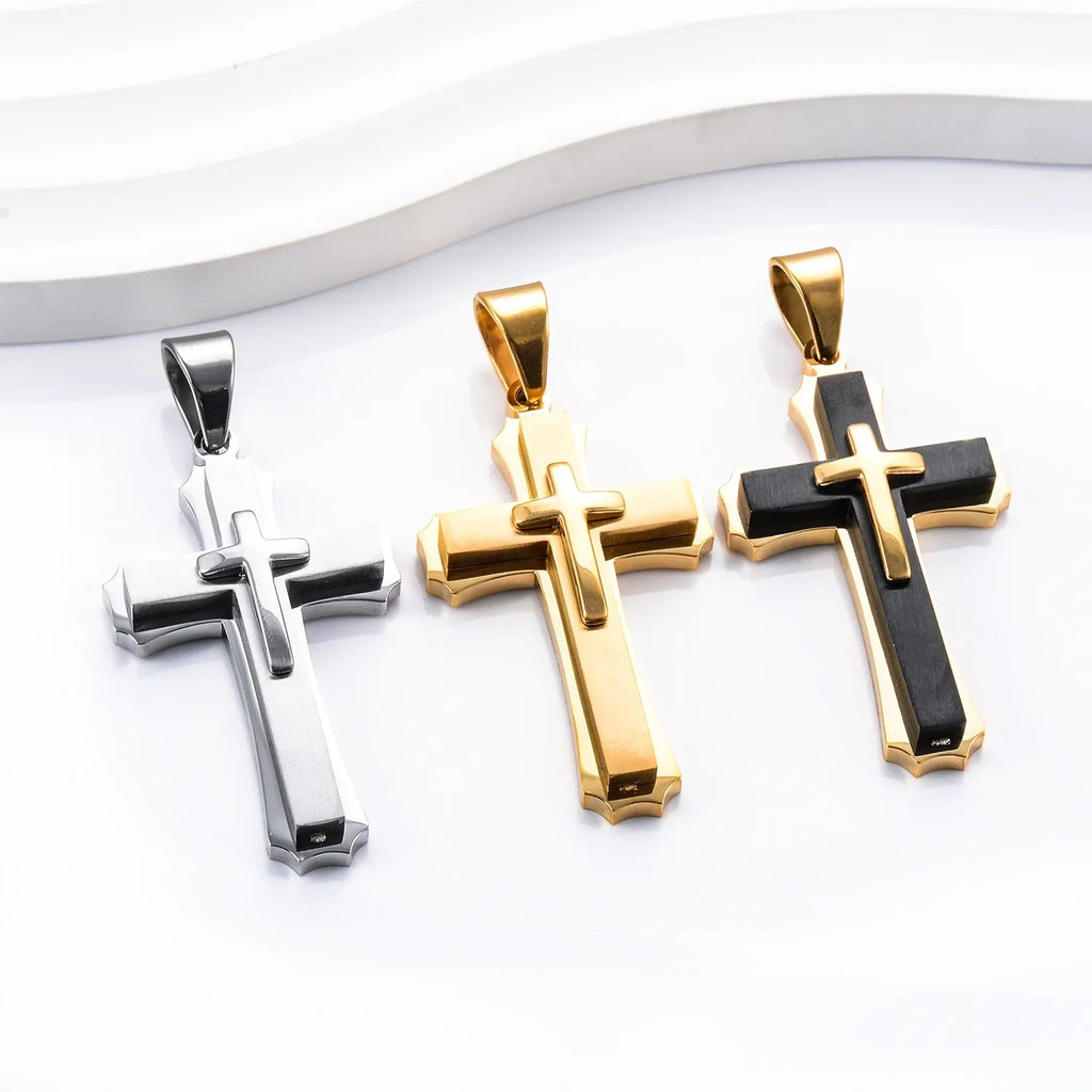 Pingente Cruz Laminada em Aço Inoxidável