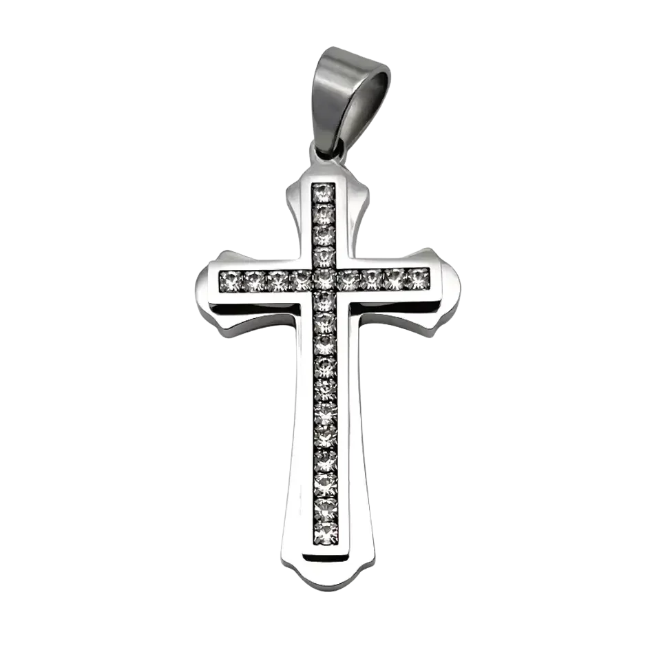 Pingente Cruz Sagrada Dupla em Aço Inoxidável com Zircônias