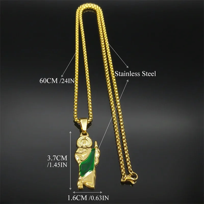 Confeccionado em aço inoxidável de alta qualidade, este pingente foi feito para durar. A robustez do material e os detalhes precisos garantem que a peça não oxide ou perca o brilho com o tempo. É a escolha perfeita para quem busca uma joia durável, elegante e que carrega um profundo significado espiritual.