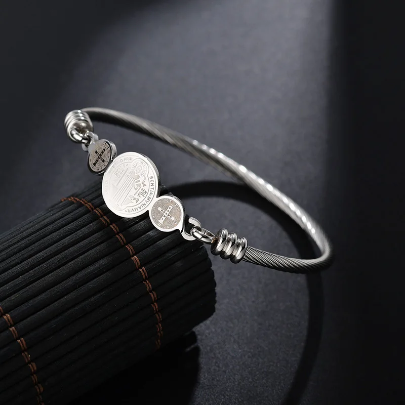 Pulseira Rosário São Bento em Aço Inoxidável – Ajustável e Religiosa
