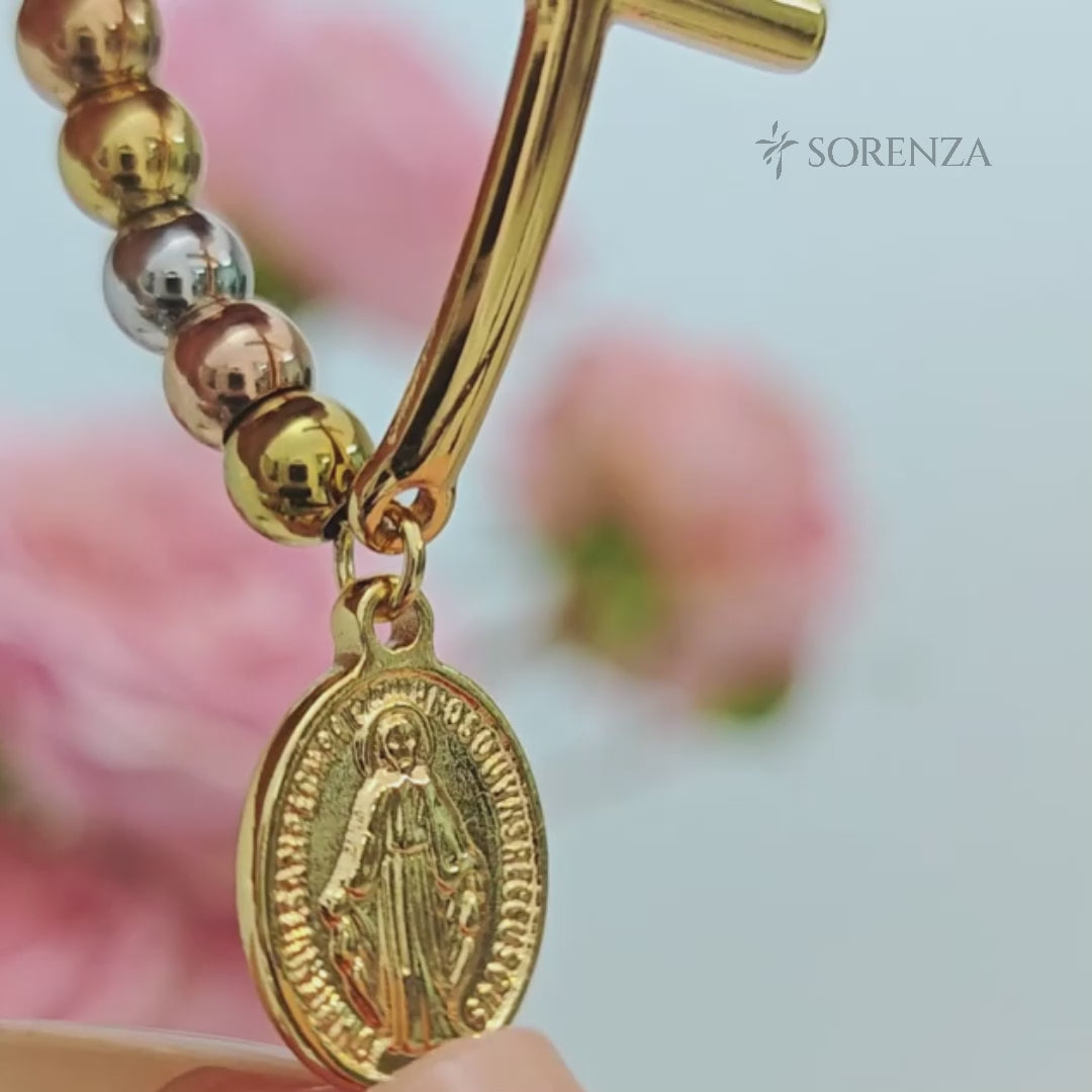 Seu design exclusivo traz a medalha de São Bento, conhecida por sua simbologia de proteção contra o mal, combinada a uma corrente de contas tricolores, que oferece um toque moderno e cheio de estilo. Um acessório versátil, perfeito tanto para momentos especiais quanto para o uso diário.