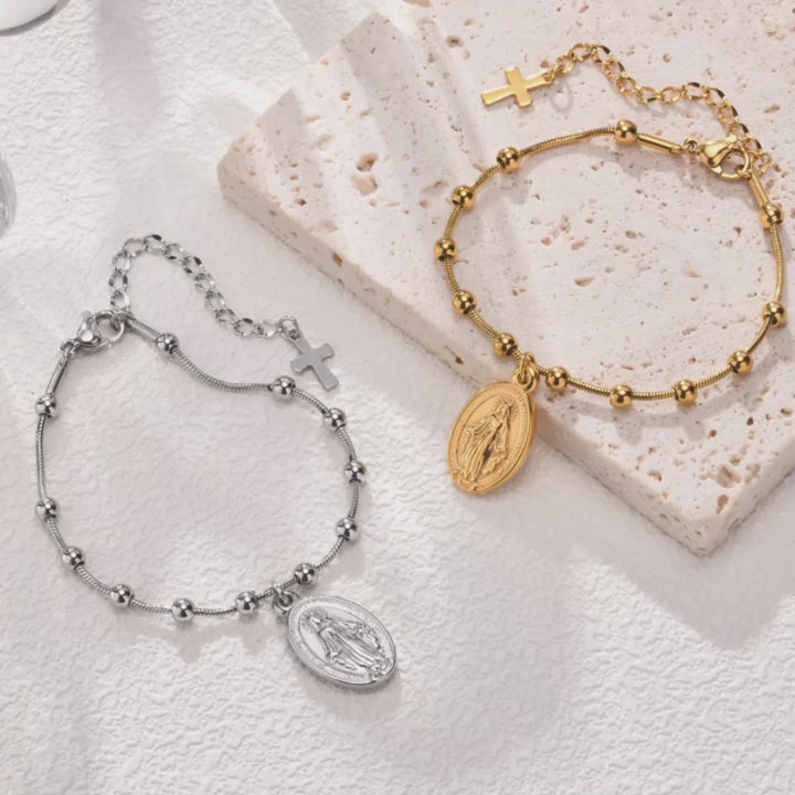 Carregue consigo um símbolo de fé com uma elegância discreta. O Pulseira Terço com Cruz e Nossa Senhora é uma joia delicada e significativa, projetada para mulheres e meninas que desejam expressar sua devoção de forma sutil e sofisticada. O design combina a beleza das esferas, um pequeno pingente de cruz e um medalhão da Virgem Maria, tornando-o um acessório que inspira paz e proteção.